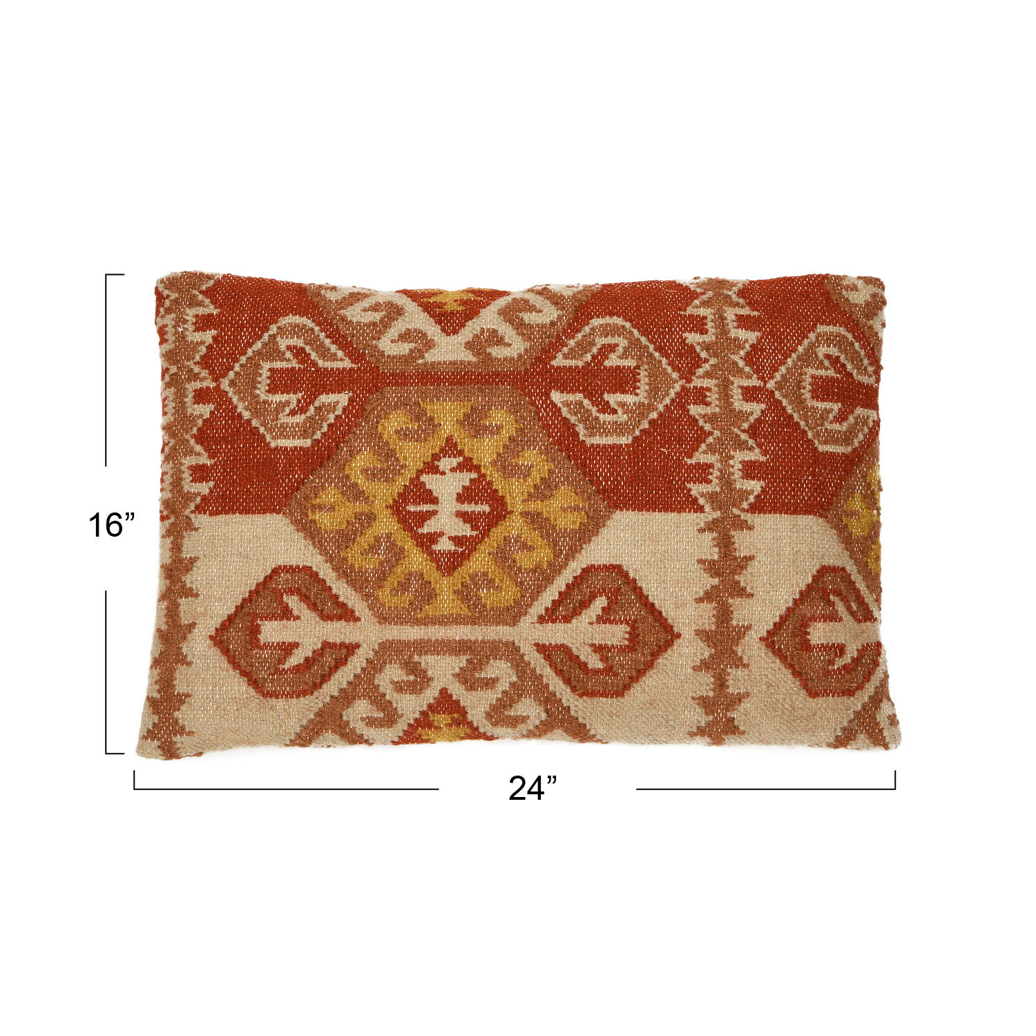Catalog Name: 24"L x 16"H Woven Wool Blend Kilim Lumbar Pillow w/ Ikat, Multi Color