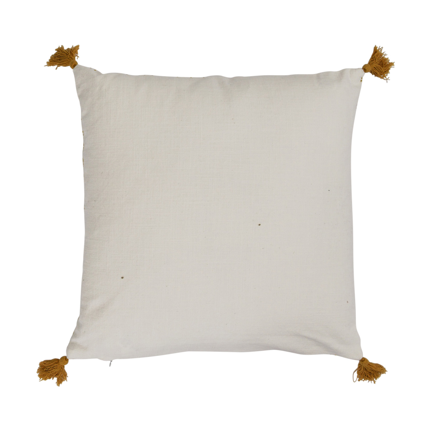 Catalog Name: 20" Square Cotton Pillow w/ Pattern & Tassels, Cream & Mustard Color