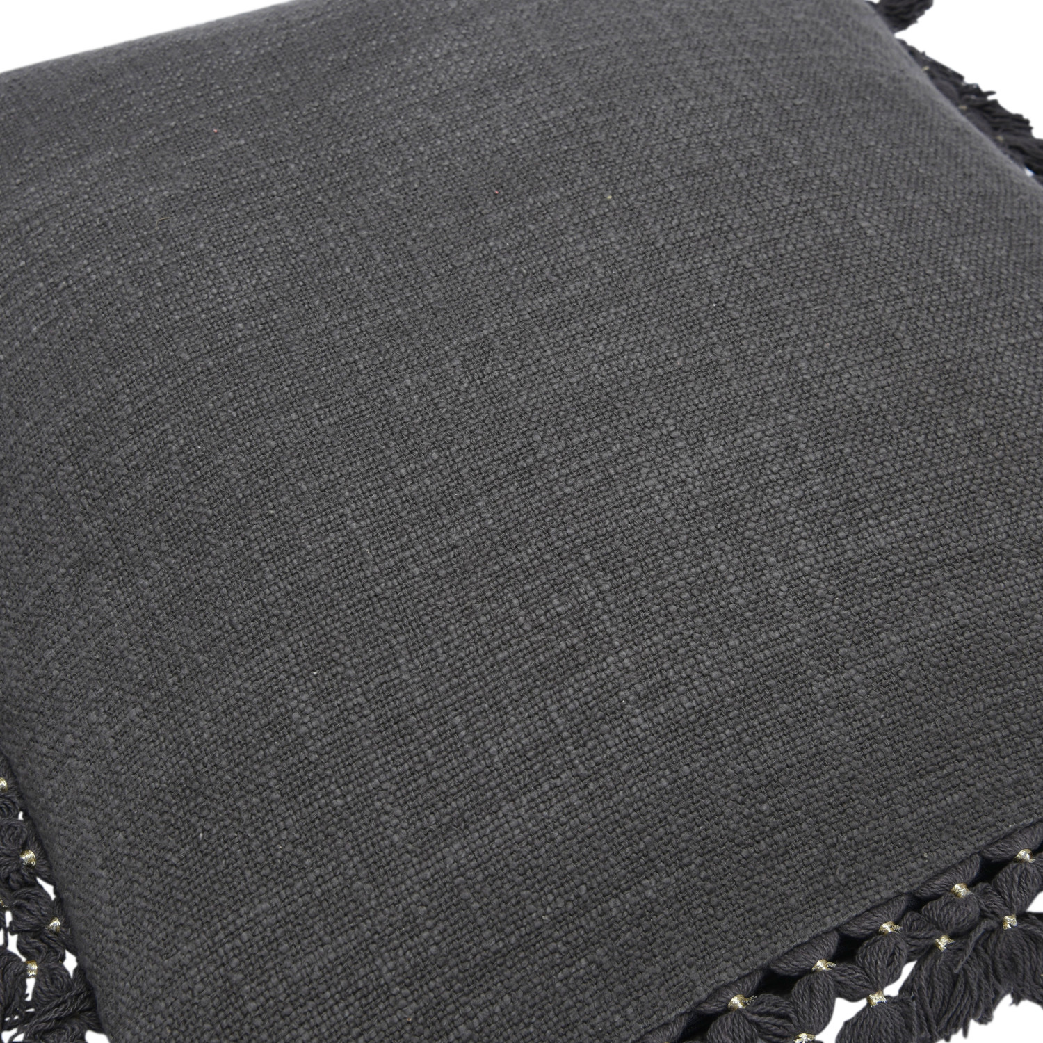 Catalog Name: 20" Square Cotton Slub Pillow w/ Gold Thread Wrapped Tassels, Charcoal Color