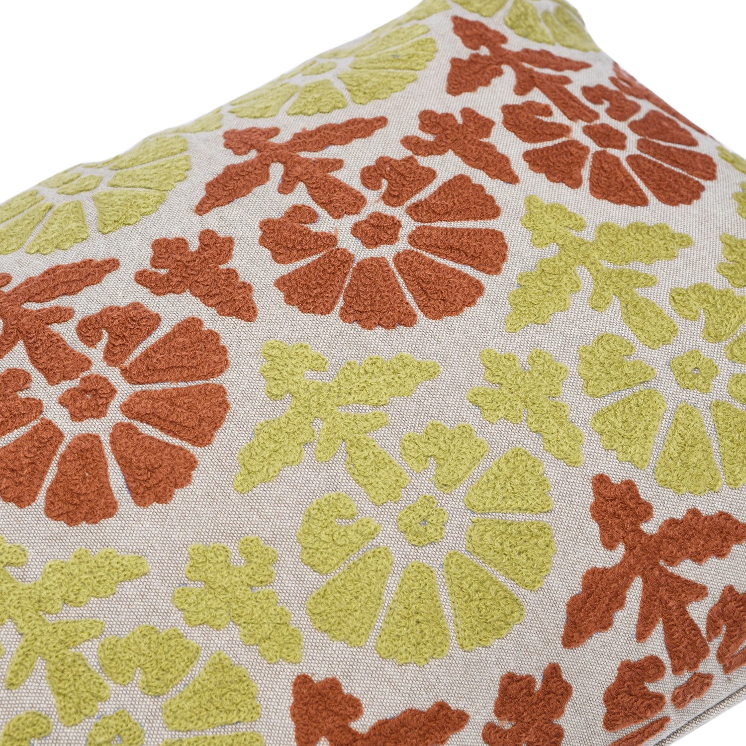This minimalist take on a vintage lumbar pillow showcases a bold, embroidered pattern on chambray cotton. Multicolor cotton chambray pillow with embroidered pattern. Express your constantly evolving style with the simple addition of this eye-catching pillow. Cotton throw pillow; Spot clean only.