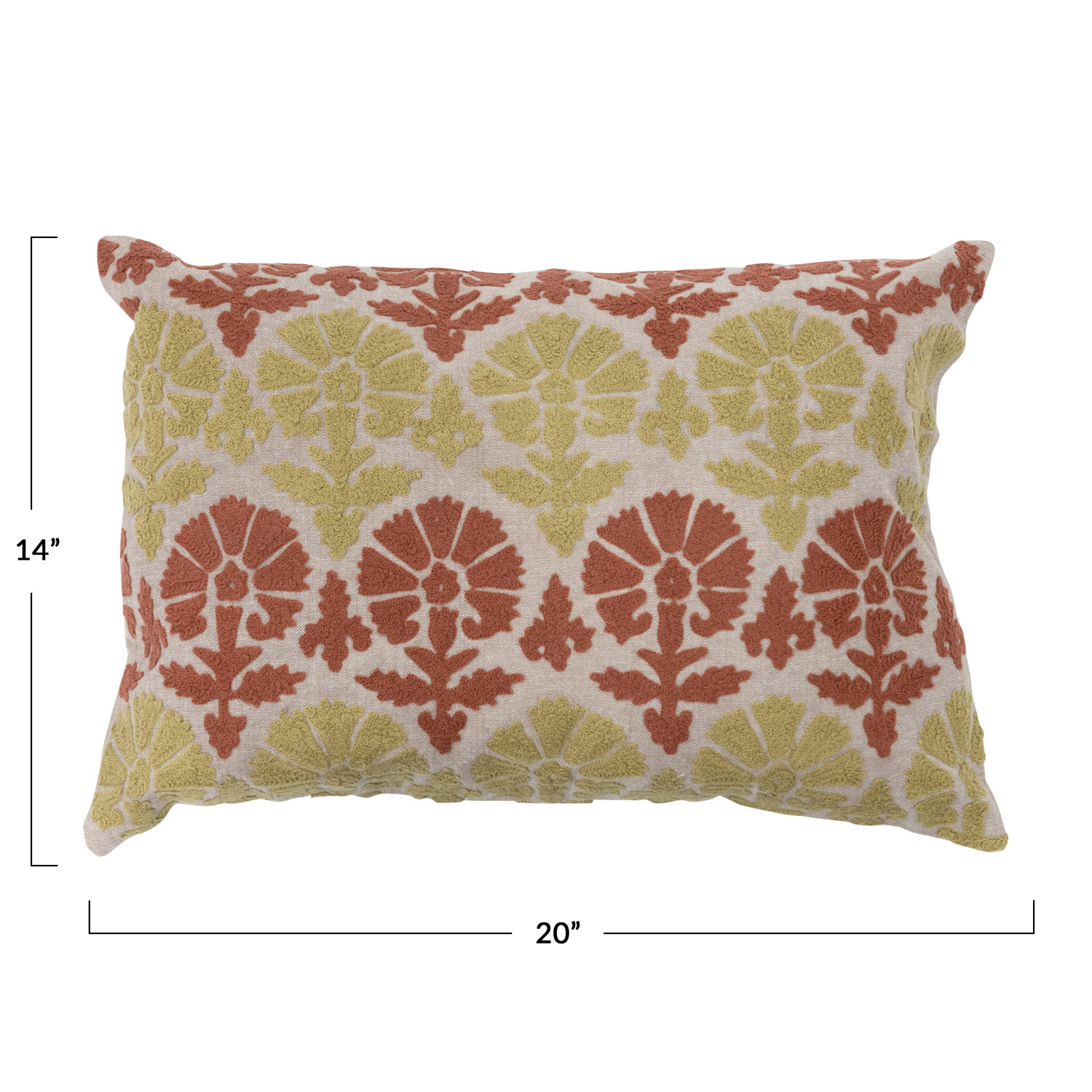 Catalog Name: 20"L x 14"H Cotton Embroidered Chambray Lumbar Pillow w/ Pattern, Multi Color