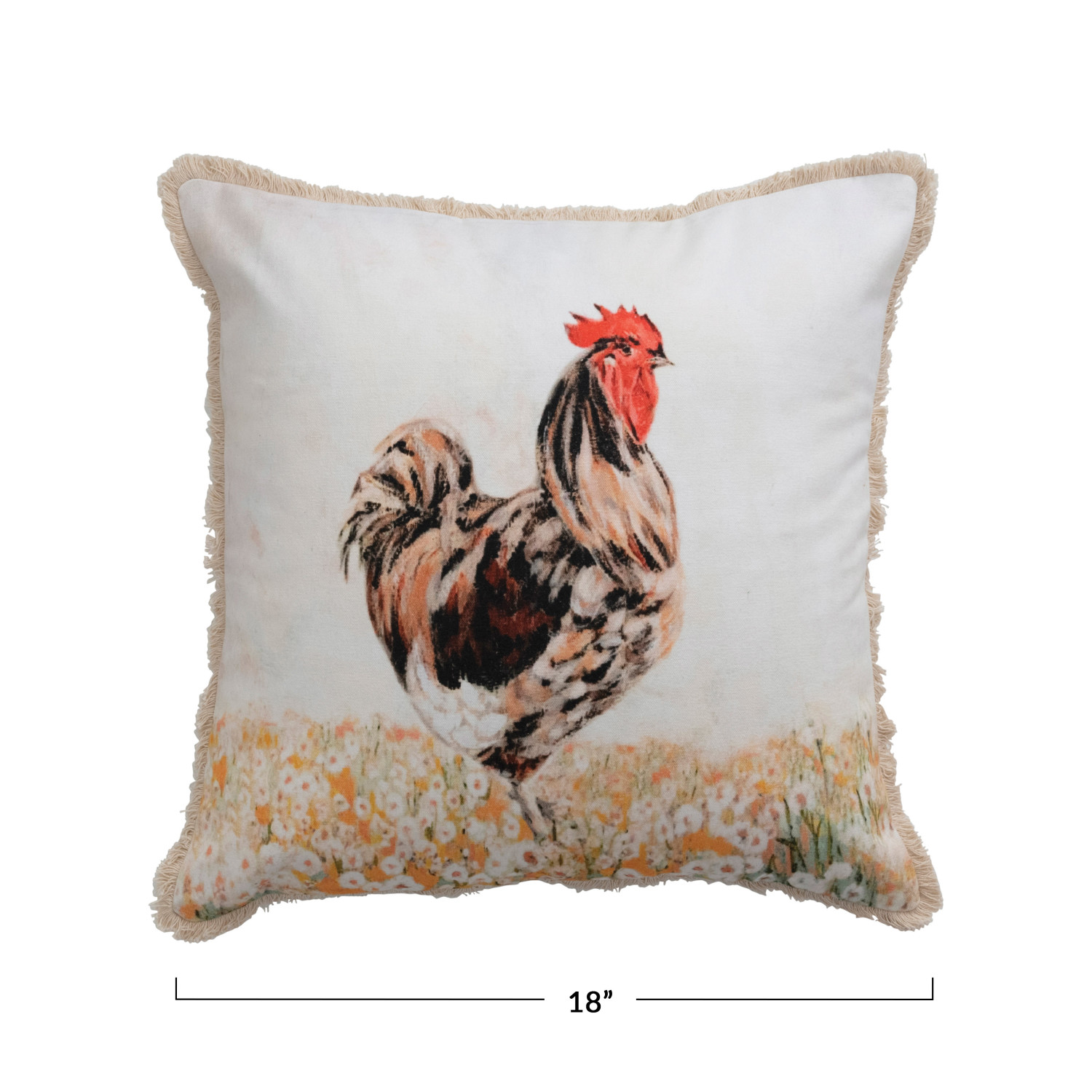 Catalog Name: 18" Square Cotton Pillow w/ Rooster & Eyelash Fringe, Multi Color ©