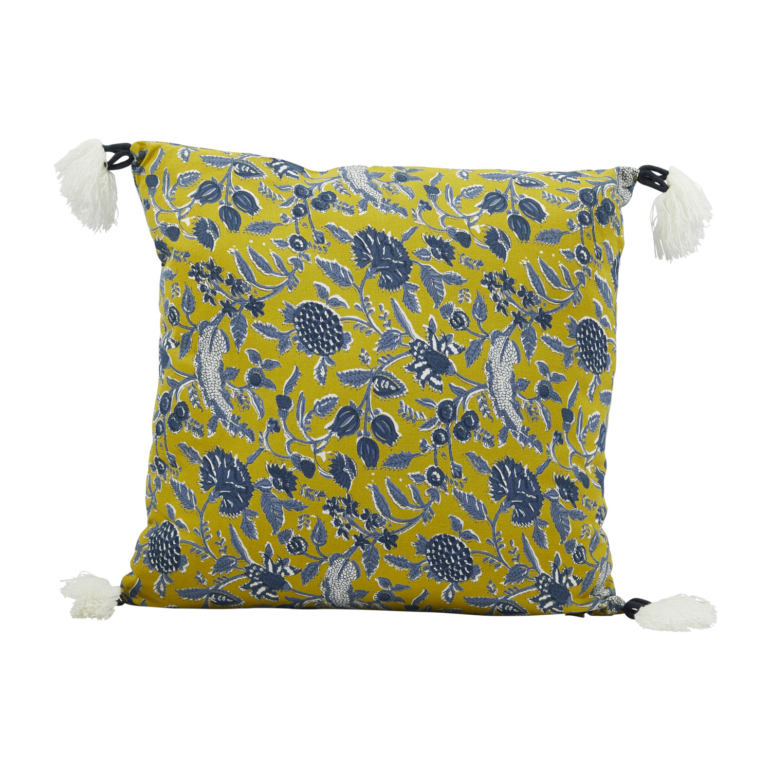 This whimsically farmhouse throw pillow cover features a bold floral pattern on cotton, finished with decorative yarn-wrapped tassels. Square blue, chartreuse, and white cotton throw pillow with floral print and yarn-wrapped tassels. Express your constantly evolving style with the simple addition of this eye-catching pillow. Removable cotton throw pillow cover with polyester insert; Hidden in seam zipper closure; Machine wash warm, gentle cycle, do not bleach; Tumble dry low, warm iron if needed or hand wash.