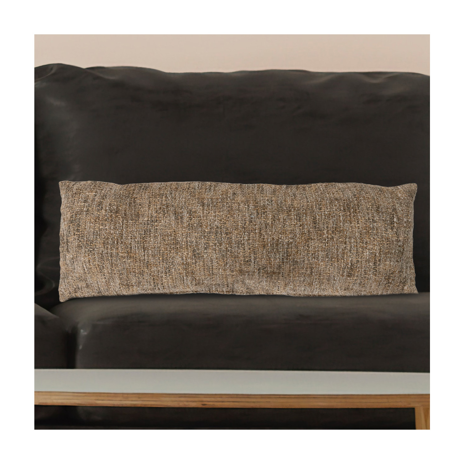 Catalog Name: 36"L x 13"H Melange Cotton Blend Bouclé Lumbar Pillow, Grey & Tan Color
