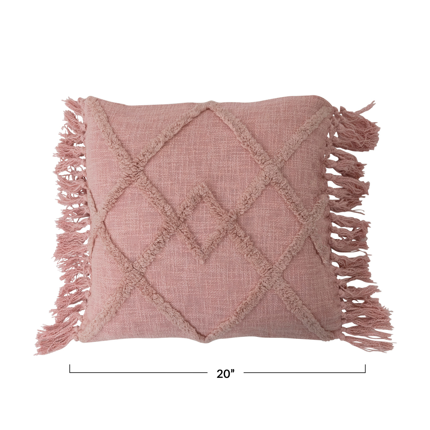 Catalog Name: 20" Square Cotton Blend Pillow w/ Tufted Pattern & Fringe, Polyester Fill, Pink