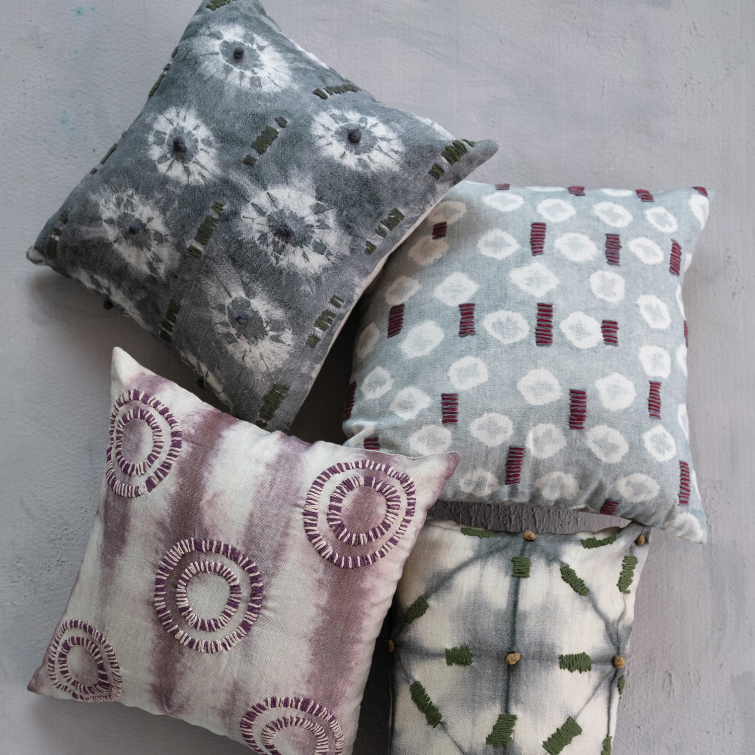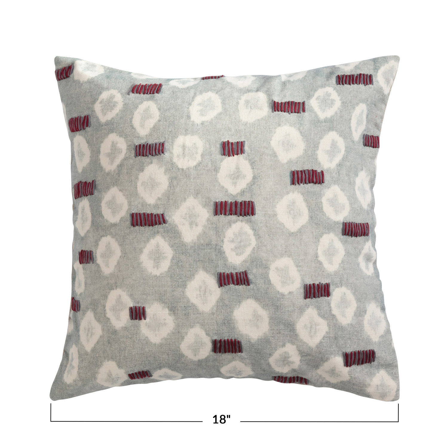 Catalog Name: 18" Square Linen Printed Pillow w/ Hand-Embroidery & Chambray Back, Multi Color