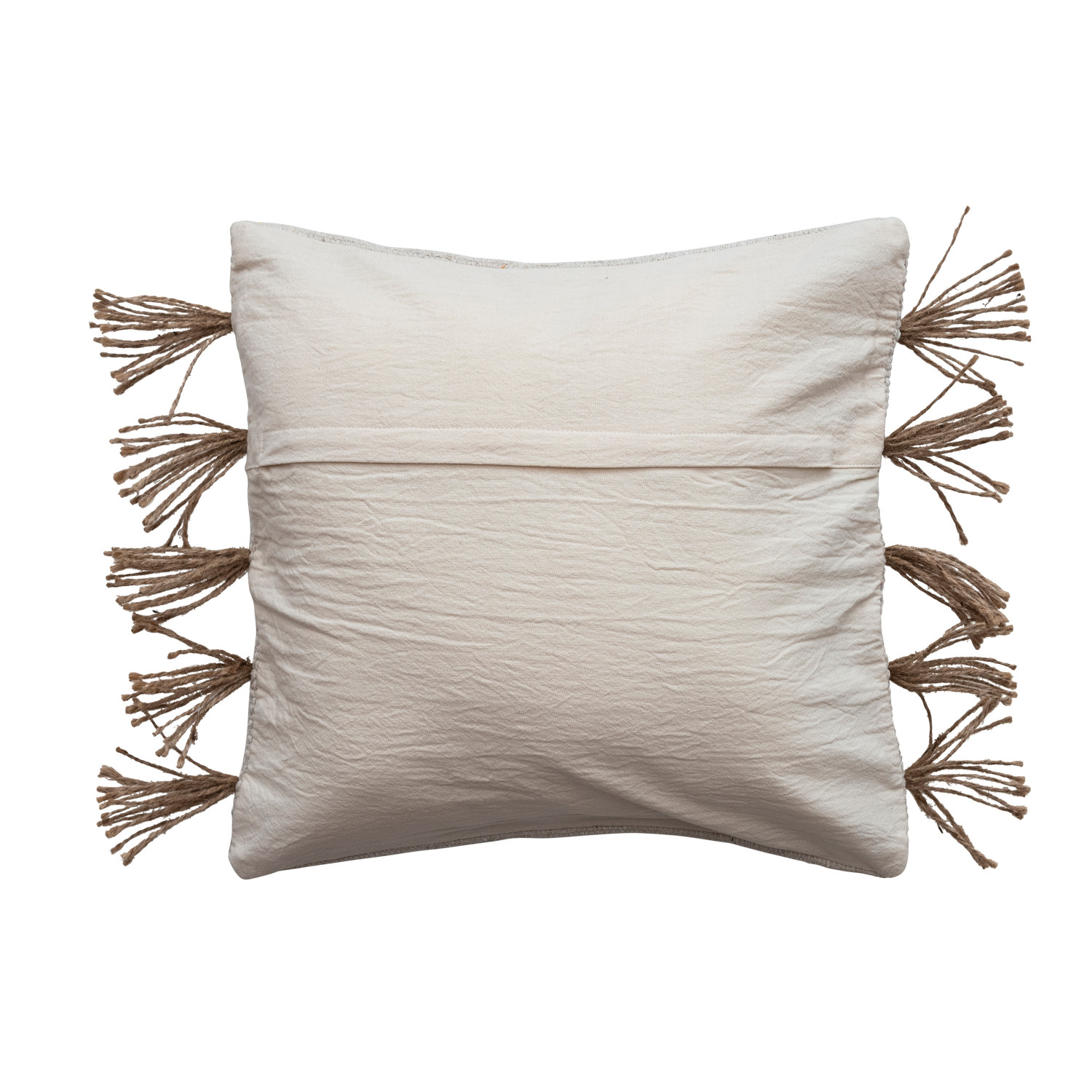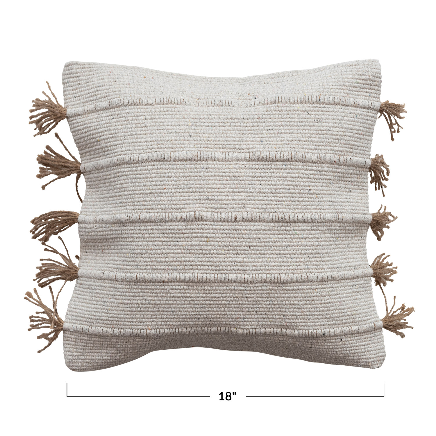 Catalog Name: 18" Square Woven Jute & Cotton Dhurrie Pillow w/ Tassels, Cream Color & Natural