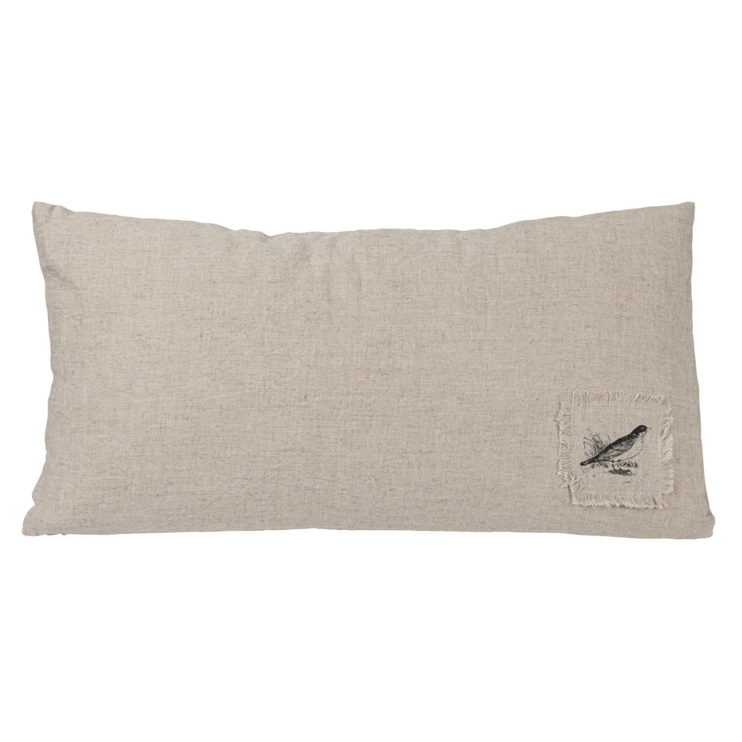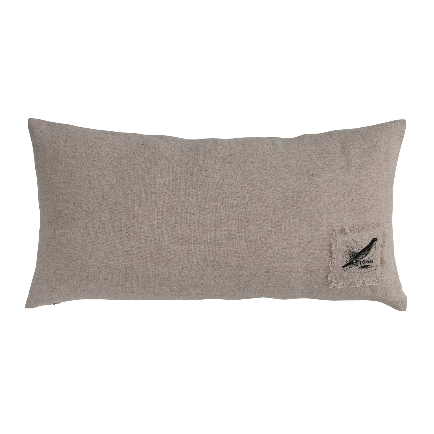 Catalog Name: 24"L x 12"H Linen Blend Printed Lumbar Pillow w/ Saying, Flowers & Bird on Back, Natural & Black