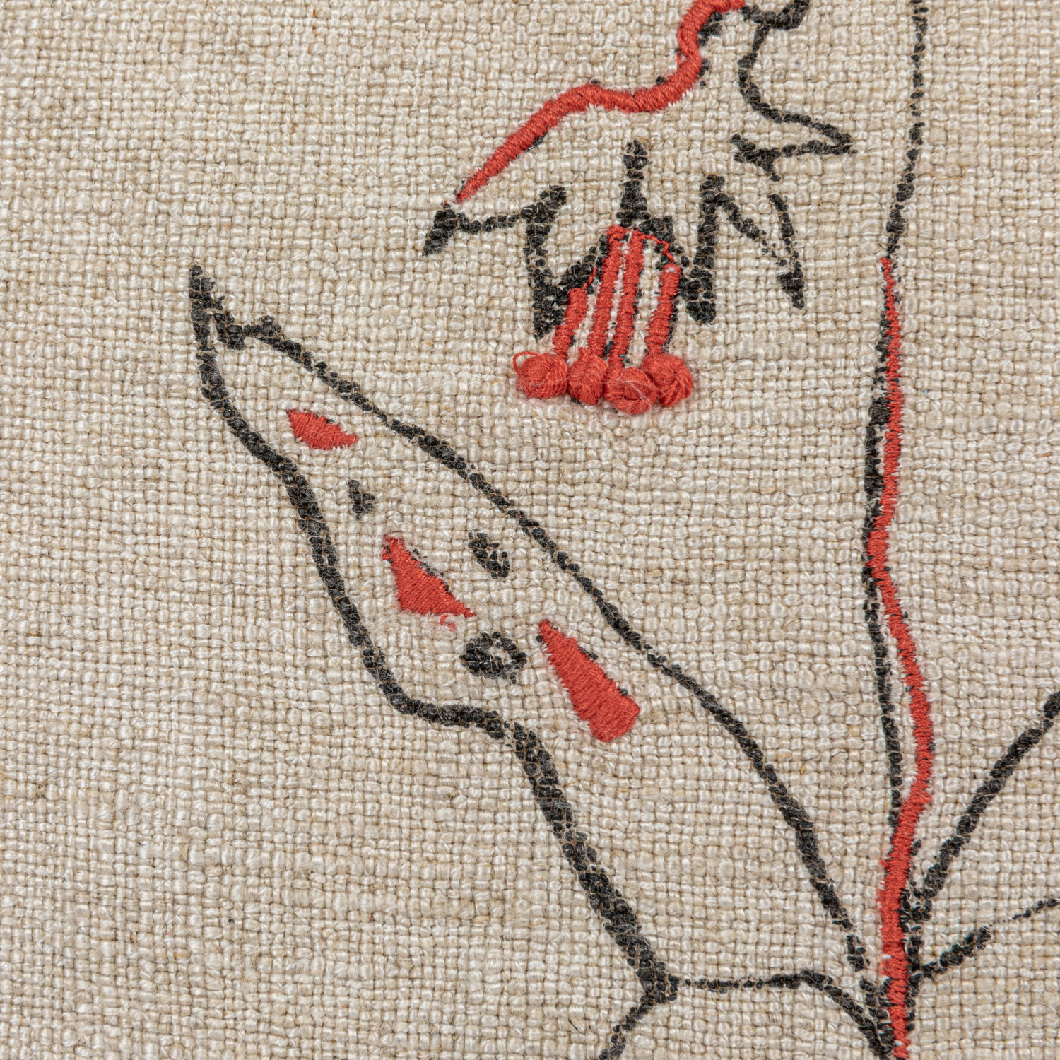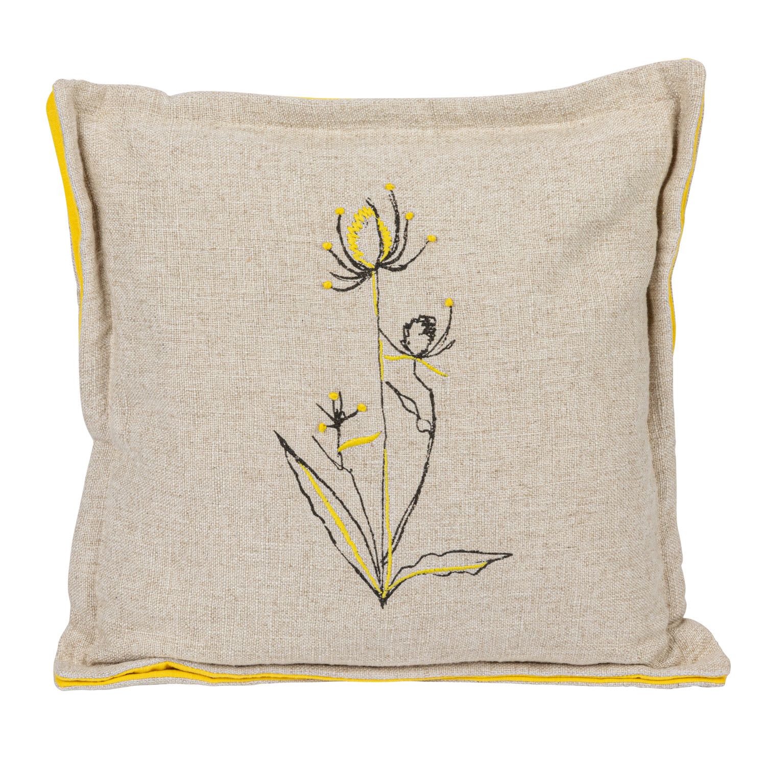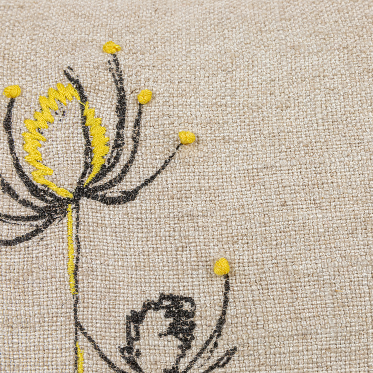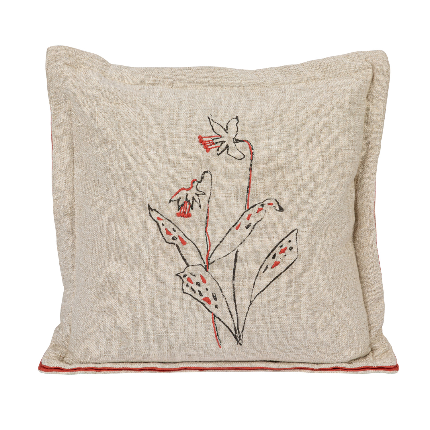 Hand-Embroidered Linen Blend Printed Pillow w/ Flower, 2 Styles ©