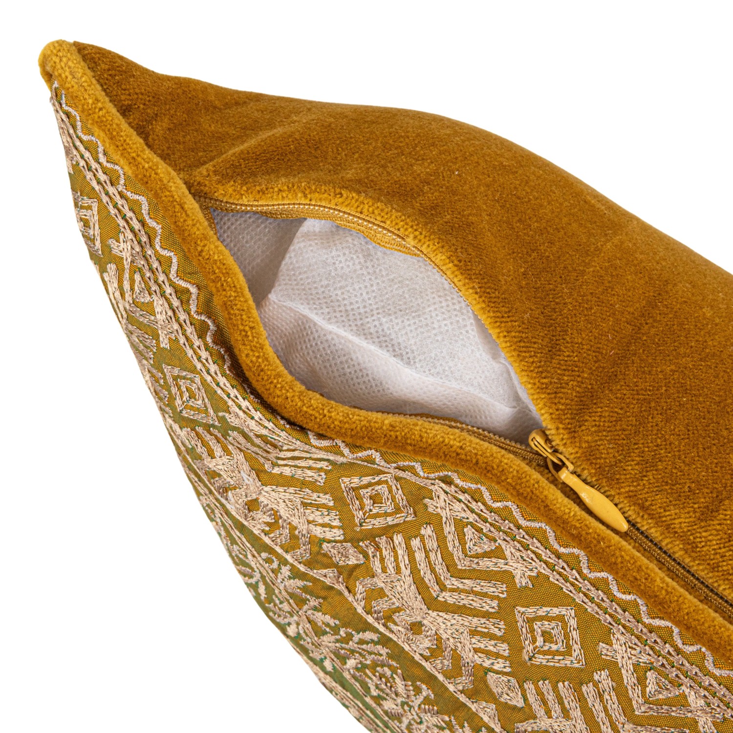 This cotton velvet pattern and piping pillow is a gorgeous accessory that will add elegance and charm to any space. The pillow features an embroidered pattern in chartreuse color, creating a stunning and unique design. The pillow also has piping in the same color, adding texture and dimension. The pillow cover is made of cotton velvet, a smooth and luxurious fabric that is durable and cozy. The pillow has a polyester insert that is soft and comfortable and can be easily removed for washing. The pillow cover has a zipper closure for convenience. The pillow measures 18 inches long and 18 inches wide, making it a standard size for any sofa, chair, or bed. This is a stylish accessory that can match any boho, eclectic, global, transitional, or French country-style home. Use it to add contrast and sophistication to any room with its gorgeous design and quality material.