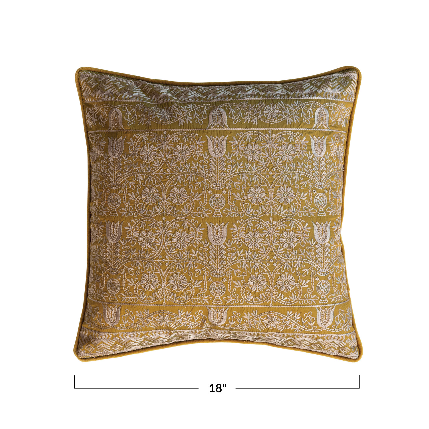 Catalog Name: 18" Square Cotton Velvet Embroidered Pillow w/ Pattern & Piping, Chartreuse