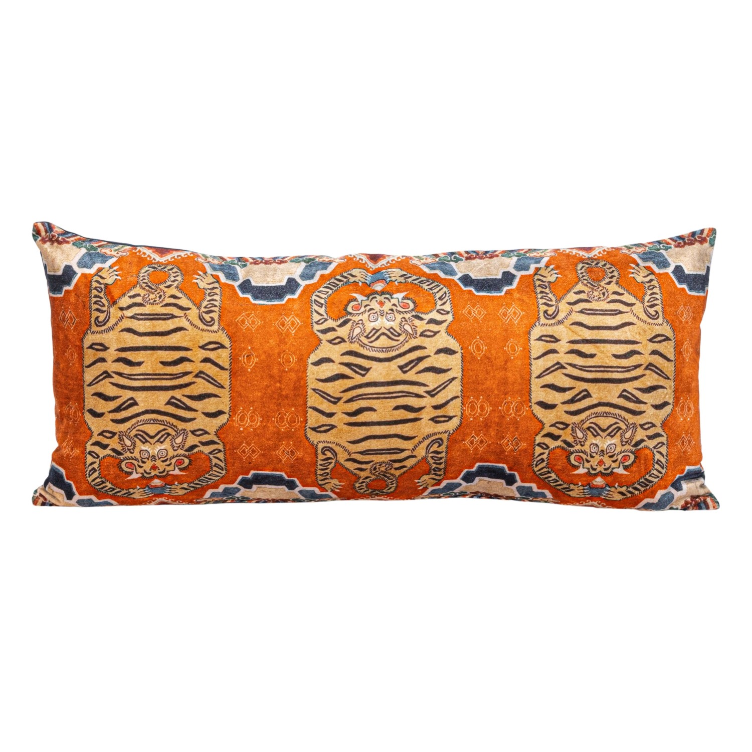 Catalog Name: 32"L x 14"H Cotton Velvet Printed Lumbar Pillow w/ Tibetan Tigers Pattern & Cotton Back, Multi Color
