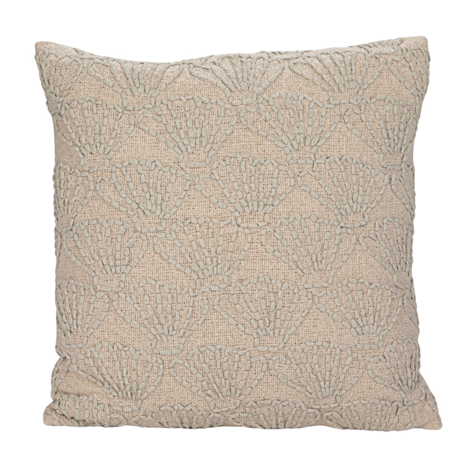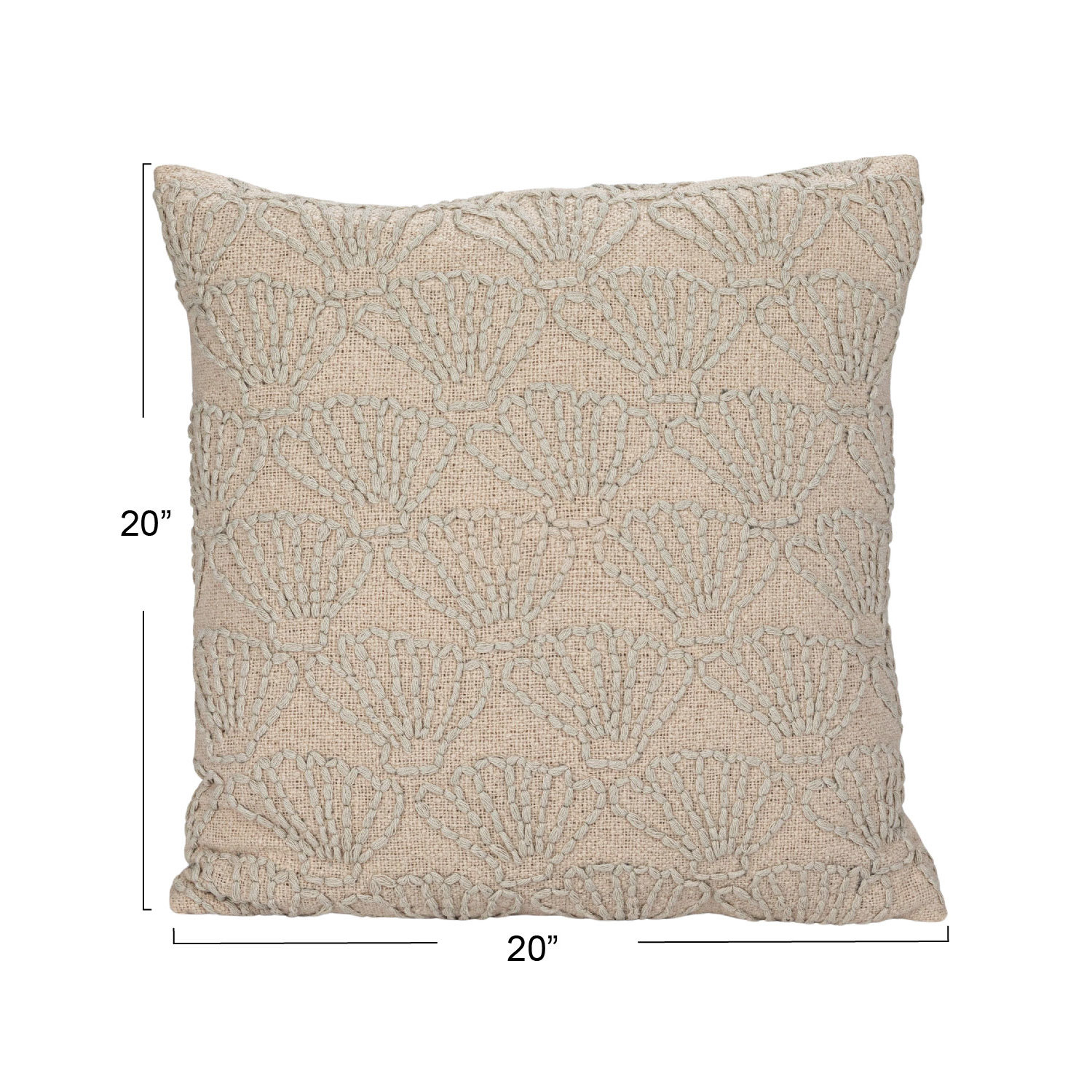 Catalog Name: 20" Square Hand-Embroidered Cotton & Linen Pillow w/ Shell Pattern, Natural