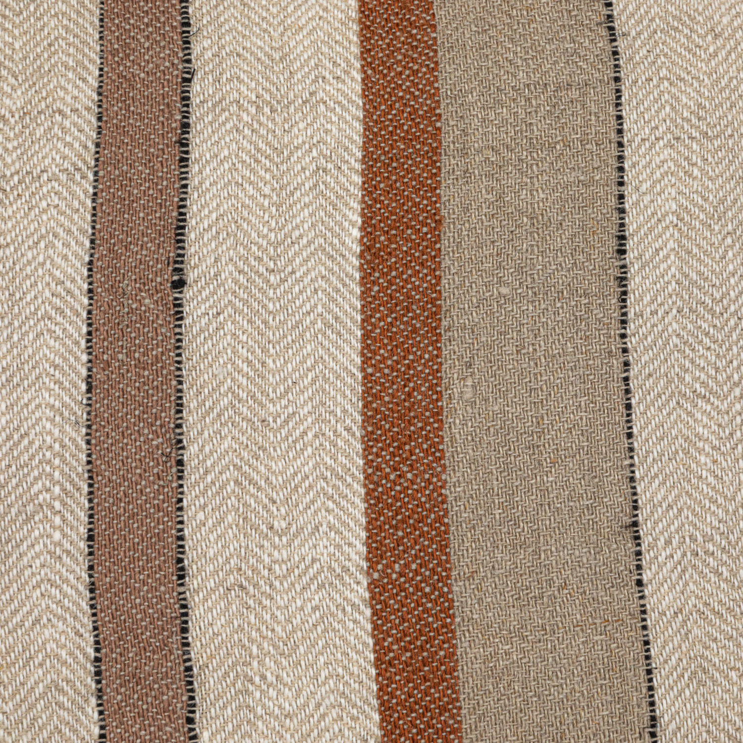 Catalog Name: 20" Square Woven Linen Pillow w/ Stripes, Cotton Slub Back & Fringe, Brown, Tan & Cream Color