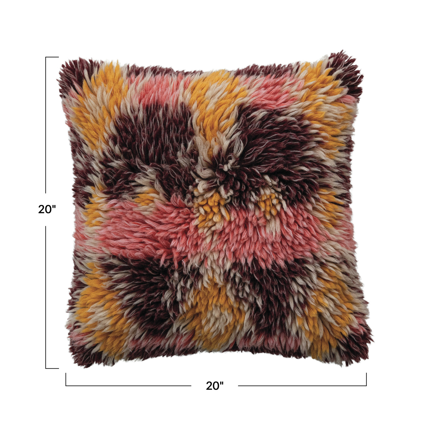 Catalog Name: 20" Square Woven New Zealand Wool Shag Pillow w/ Cotton Back, Multi Color