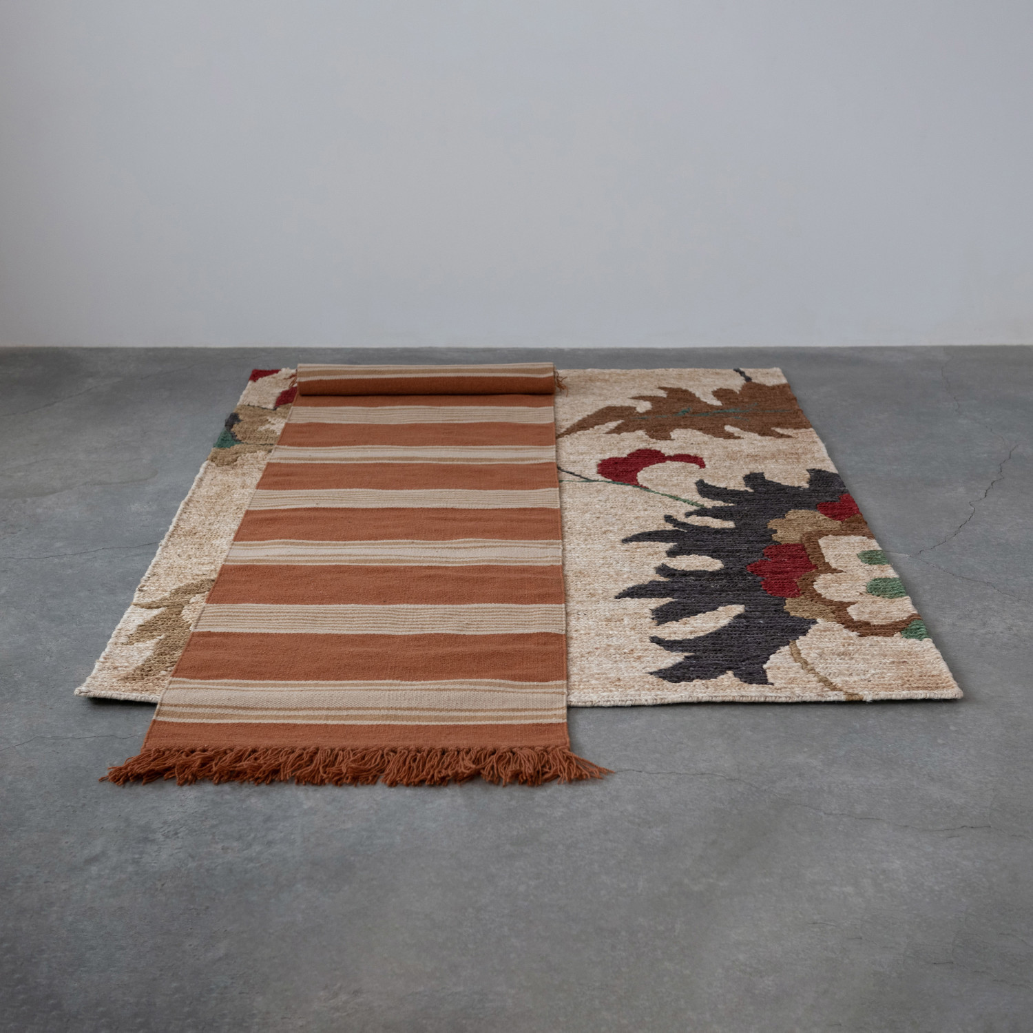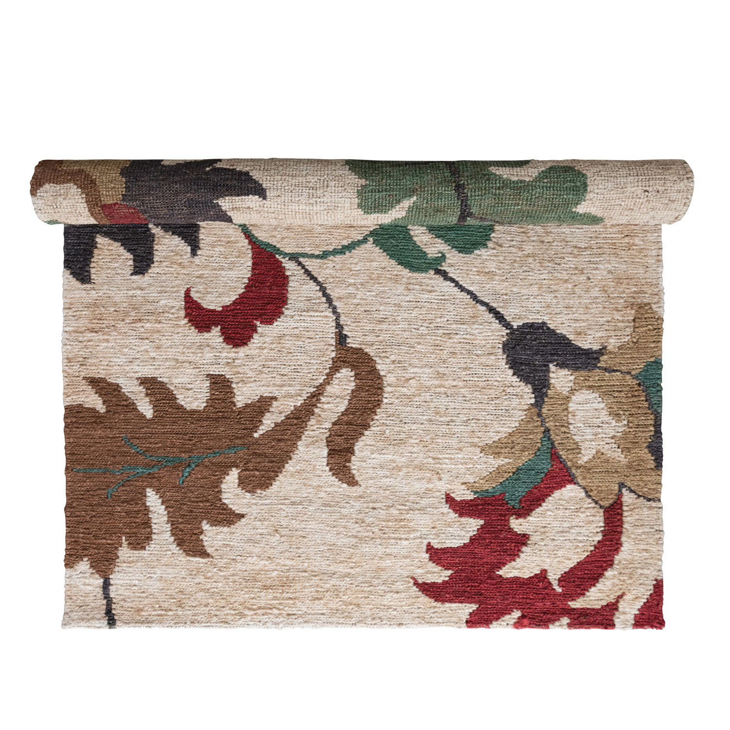 This boldly designed rug showcases intricately woven jute with a multicolor botanical design.
