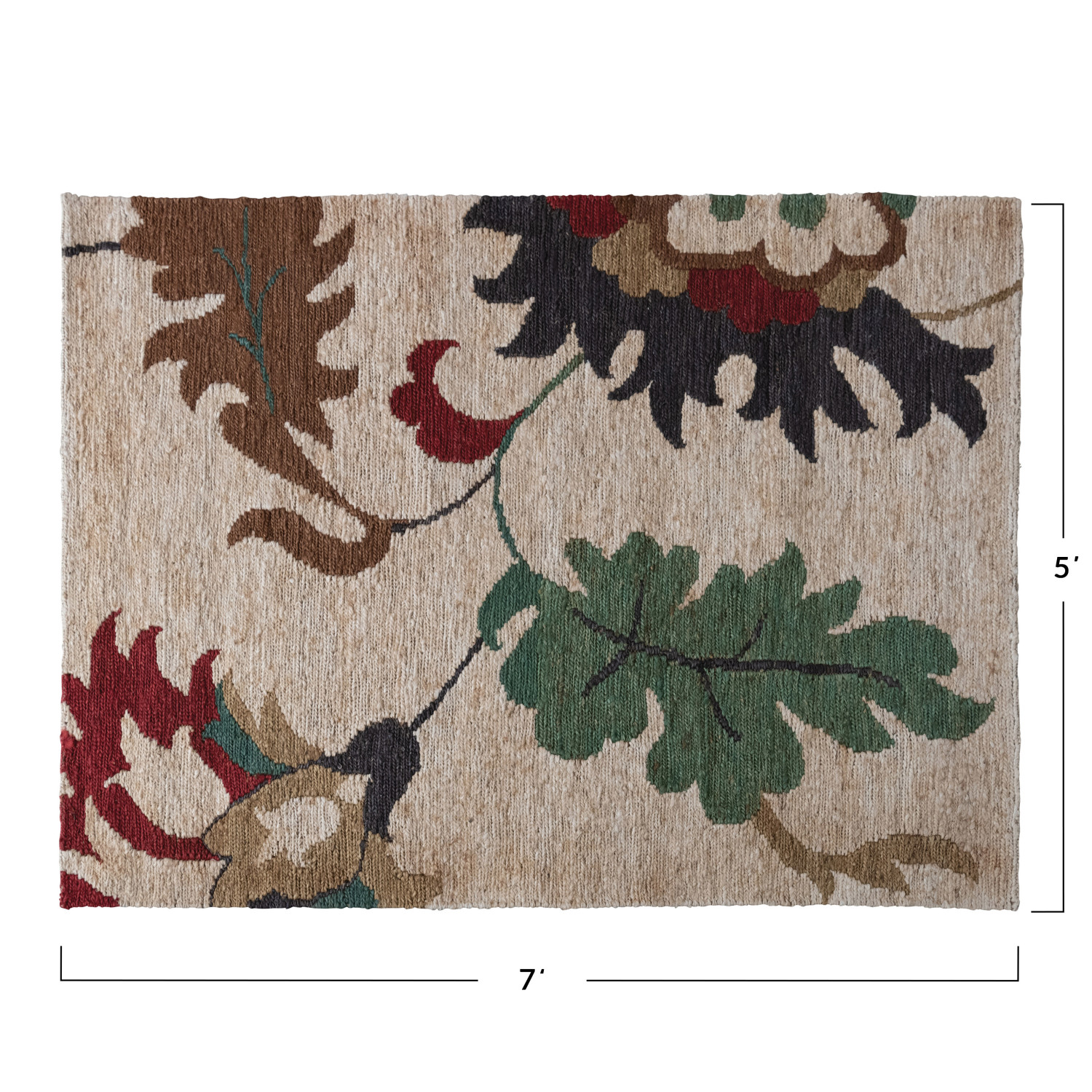Catalog Name: 5' x 7' Woven Jute Rug w/ Florals, Multi Color
