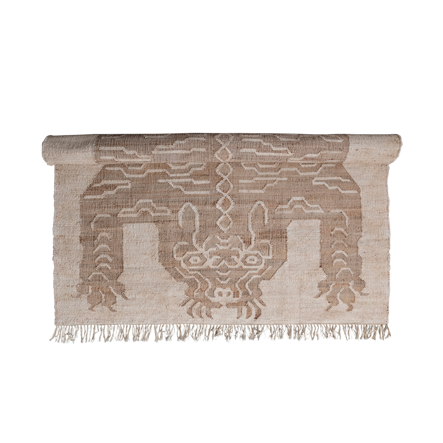 Catalog Name: 6' x 9' Hand-Woven Cotton & Jute Rug w/ Tibetan Tiger & Fringe, Natural & Brown