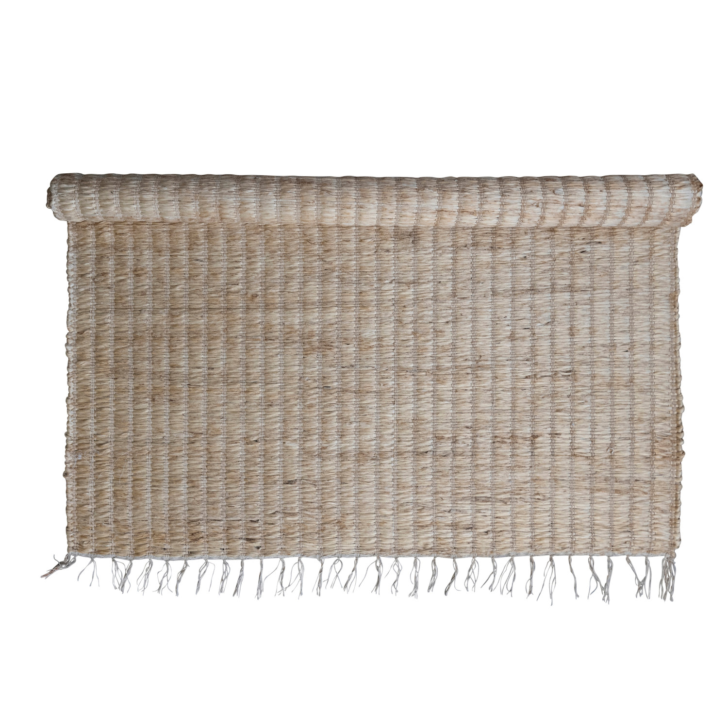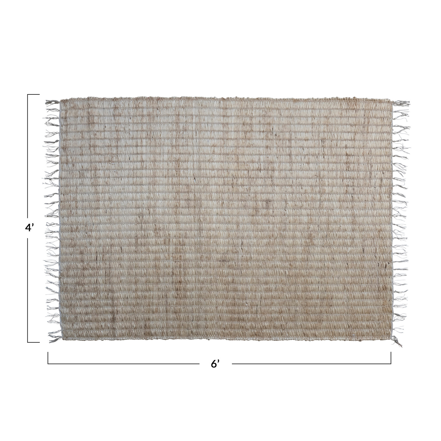 4' x 6' Woven Bleached Jute & Cotton Rug w/ Fringe, Natural