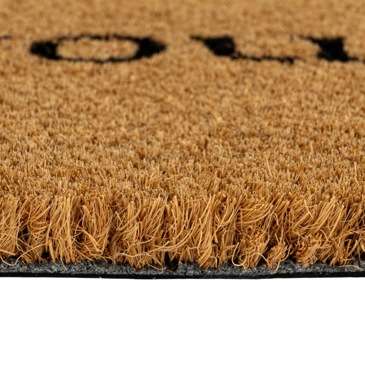This Natural Coir Bone Doormat, emblazoned with "Wipe Your Paws," offers both function and charm. Measuring 29.0 inches in length and 17.5 inches in width, it's perfectly sized to welcome visitors while keeping the entryway clean. The natural coir material, known for its durability, is complemented by a sturdy PVC backing, making the mat both long-lasting and slip-resistant. Its unique bone shape and friendly message make it an ideal choice for homes that appreciate a touch of whimsy alongside practicality. Designed to suit eclectic tastes as well as farmhouse and natural aesthetics, this doormat is a delightful greeting for any threshold.