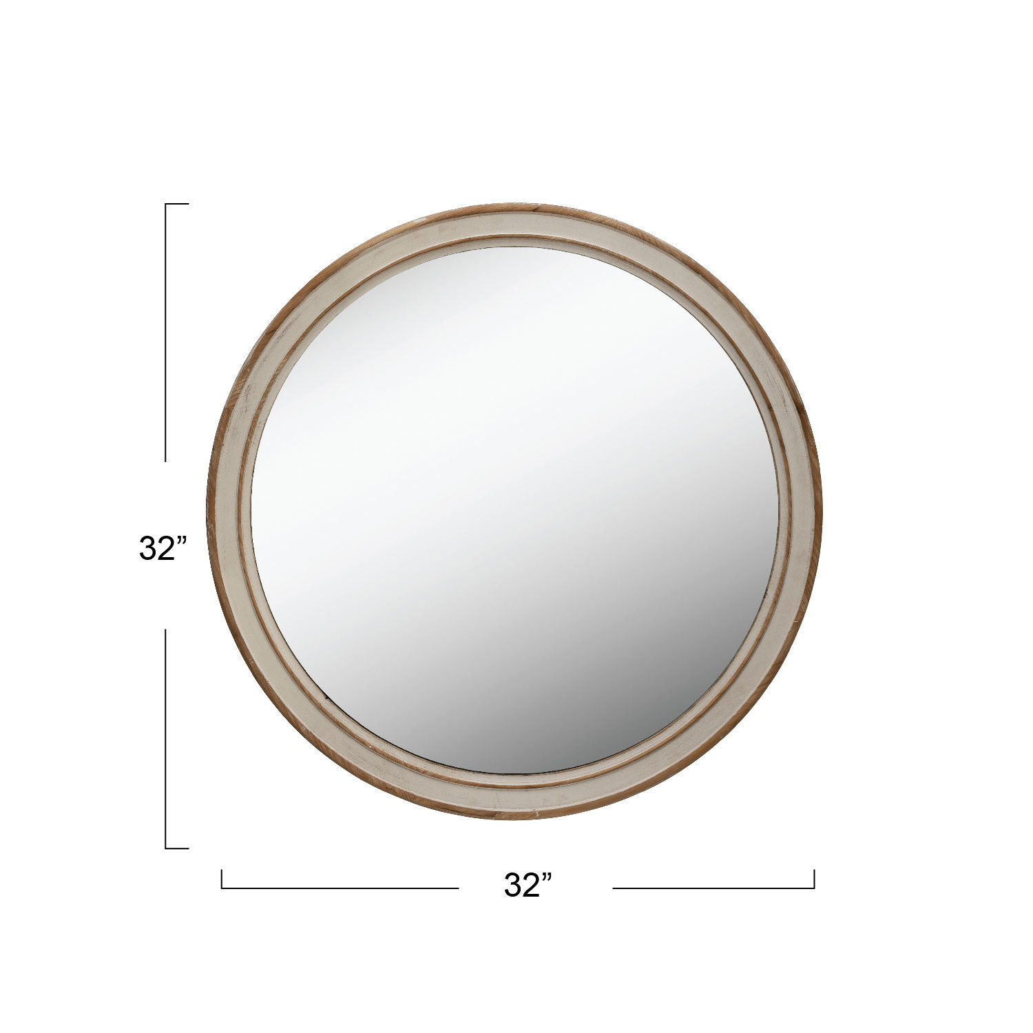 Catalog Name: 31-1/2" Round Wood Framed Wall Mirror, Natural & White