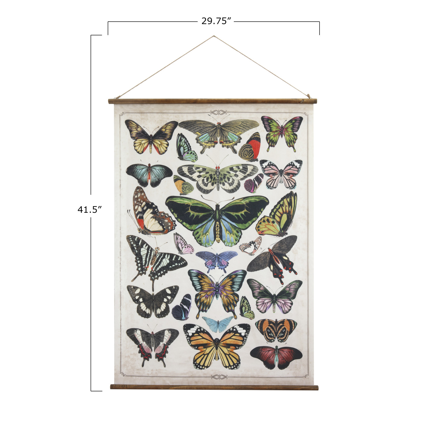 Catalog Name: 29-3/4"W x 41-1/2"H Canvas & Wood Scroll Wall Décor w/ Butterflies & Jute Hanger