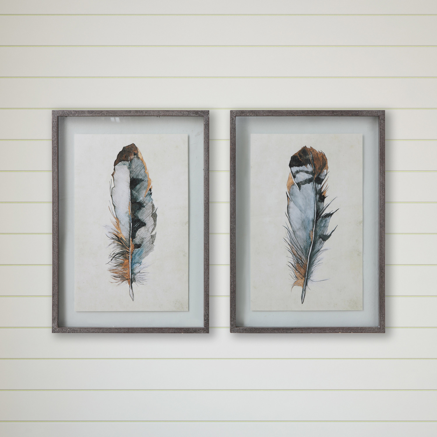 Catalog Name: 20"W x 28-3/4"H Wood Framed Glass Wall Décor w/ Feather Print, Multi Color, 2 Styles, Truck Ship