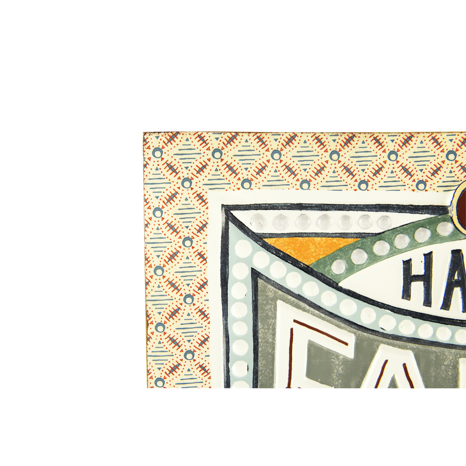 Catalog Name: 18-1/4"W x 14-1/2"H Embossed Enameled Wall Décor "One Happy Family Are We!" ©