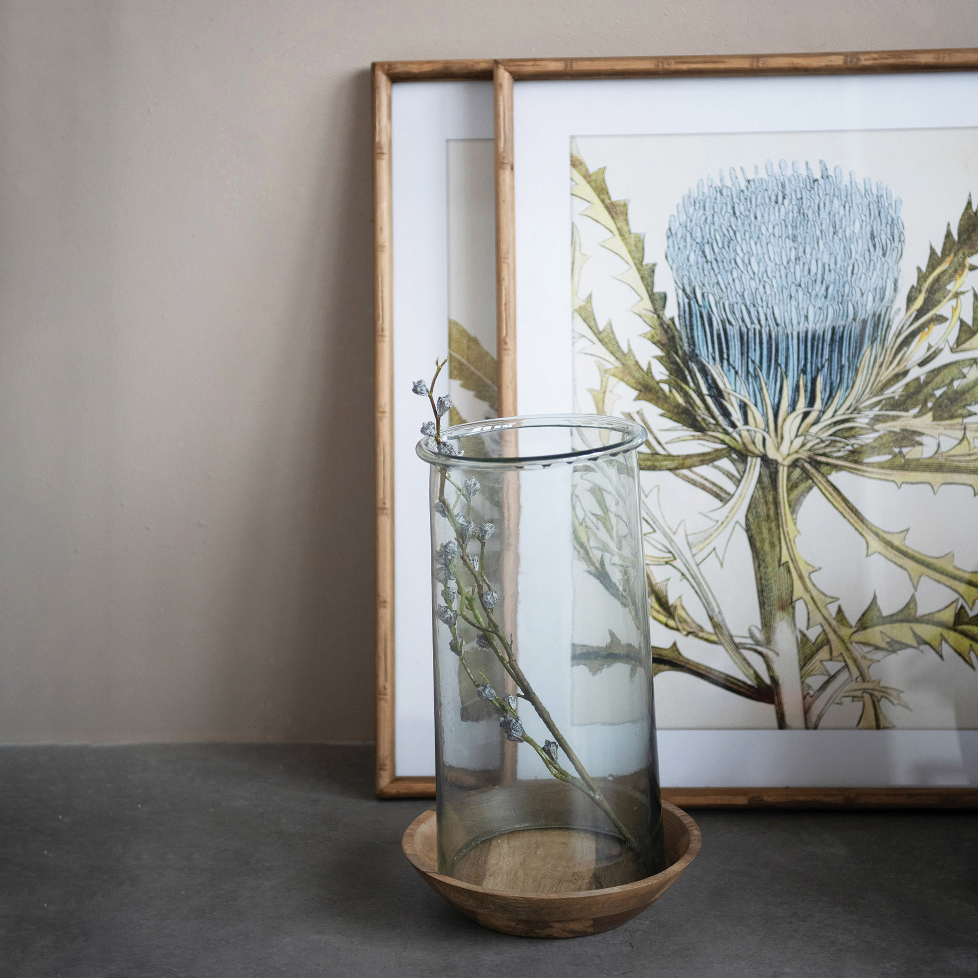 Catalog Name: 21"W x 27"H Wood Faux Bamboo Framed Glass Wall Decor w/ Flower, 2 Styles, Truck Ship