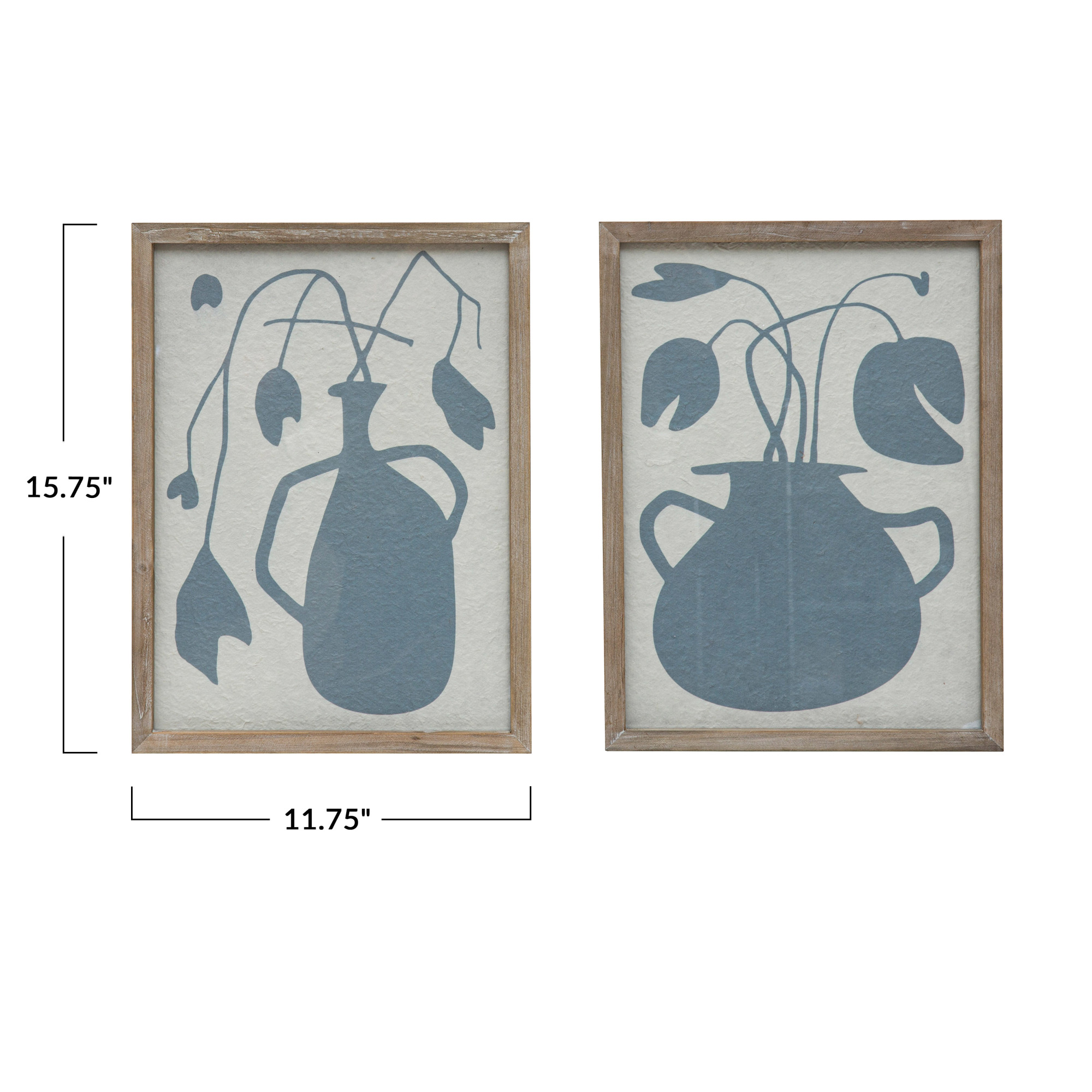 Catalog Name: 11-3/4"W x 15-3/4"H Wood Framed Glass Wall Décor w/ Abstract Flowers in Vase, Slate Color, 2 Styles
