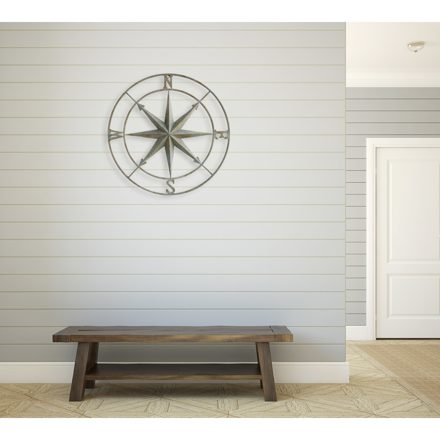 Make this compass the center of the room decor. The open design will allow the wall color to show through making the compass and wall seem as one. Place it in the center of a wall, over a mantel or above a couch or bed to add a rustic feel to any living space.