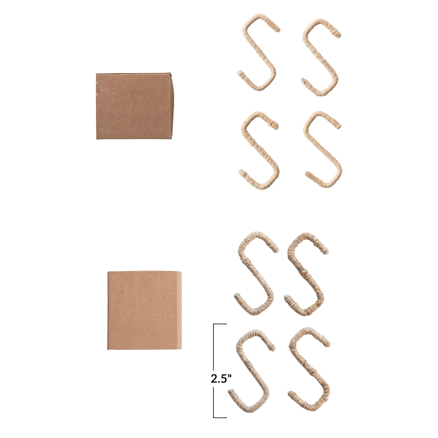 Catalog Name: 2-1/2"L x 2-1/2"H Wire & Natural Fiber Wrapped S-Hook, Boxed Set of 4, 2 Colors